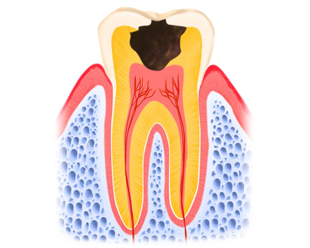 歯髄やその周りにある感染した象牙質を取り除き、そこにゴムや水酸化カルシウムを含む材料を詰めて、再び感染が起こらないようにします。