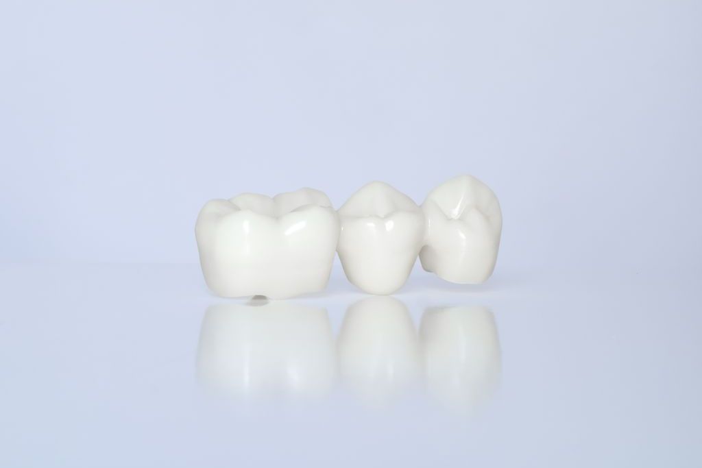 ジルコニアは人工ダイヤモンドとも呼ばれるように高い強度を誇るセラミック素材で、かみ合う歯を傷つけることもあります。人工的な白さで天然歯のような透明感はありません。